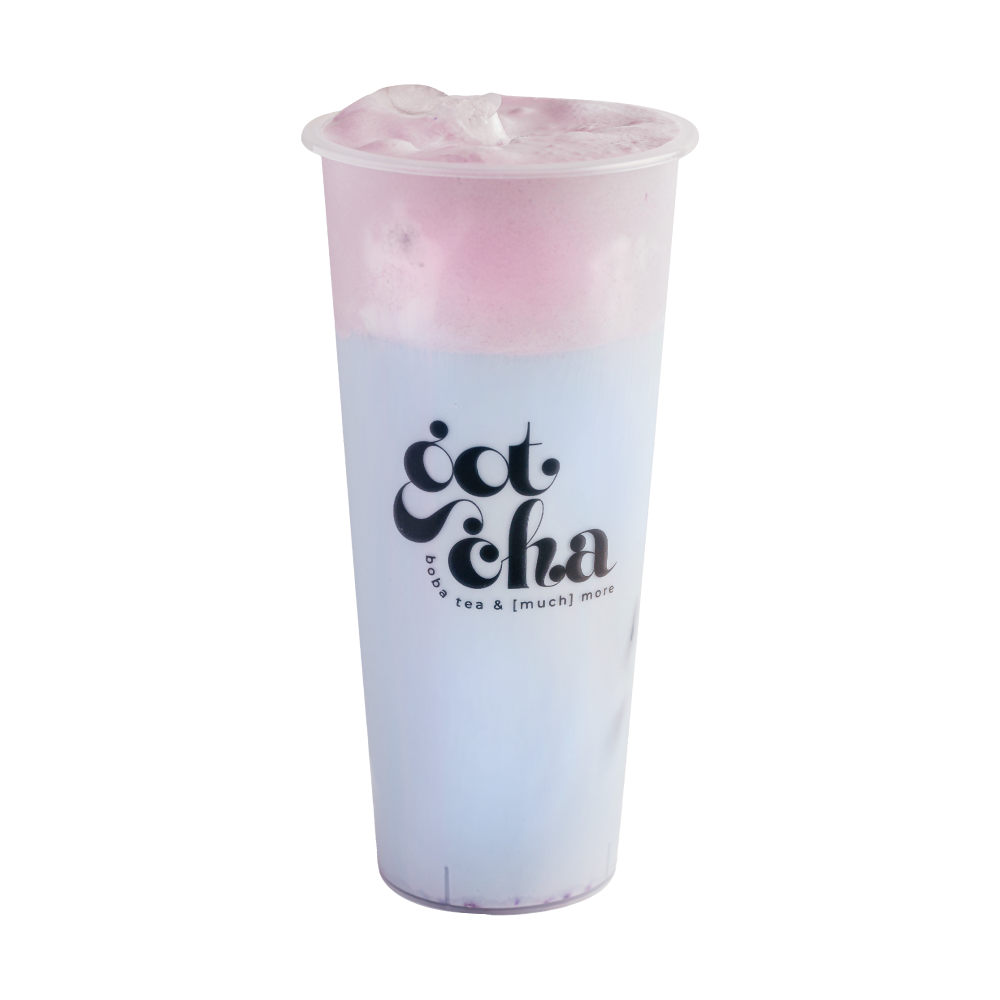 Two besties in one cup - vanilla-infused butterfly pea tea topped with taro foam.