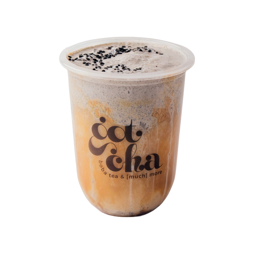 Layer: creamy cloud foam with sesame paste and black sesame seeds